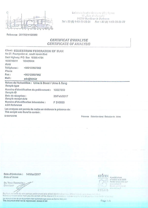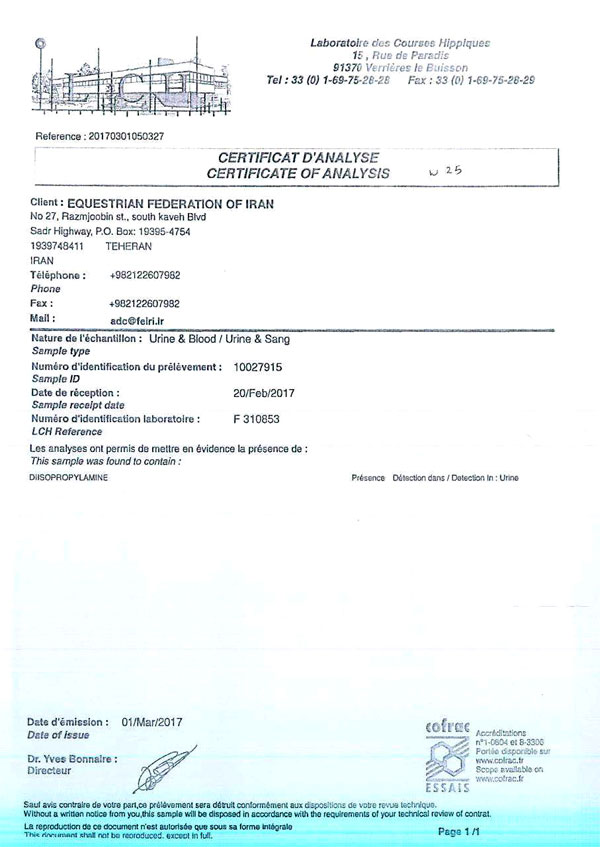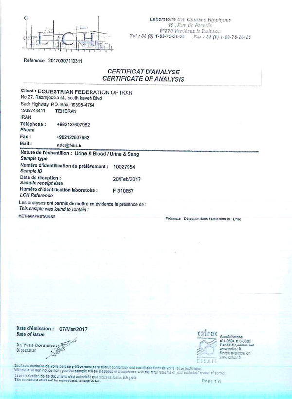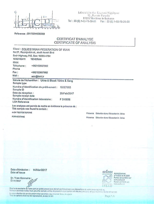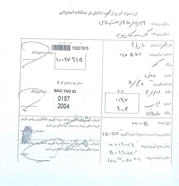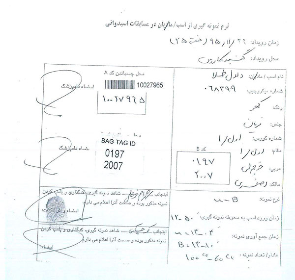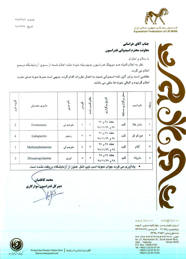 نتایج آزمایشات مثبت دوپنیگ هفته بیست و چهارم اسبدوانی گنبدکاووس به شرح زیر است.