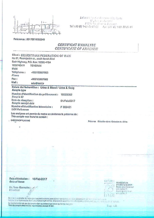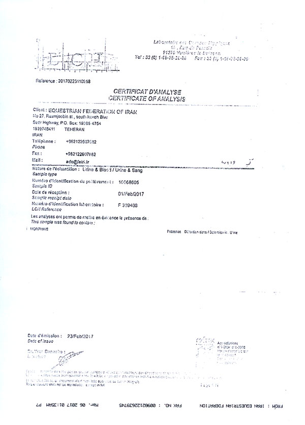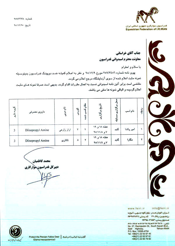 نتایج آزمایشات مثبت دوپنیگ هفته هجدهم اسبدوانی گنبدکاووس به شرح زیر است.