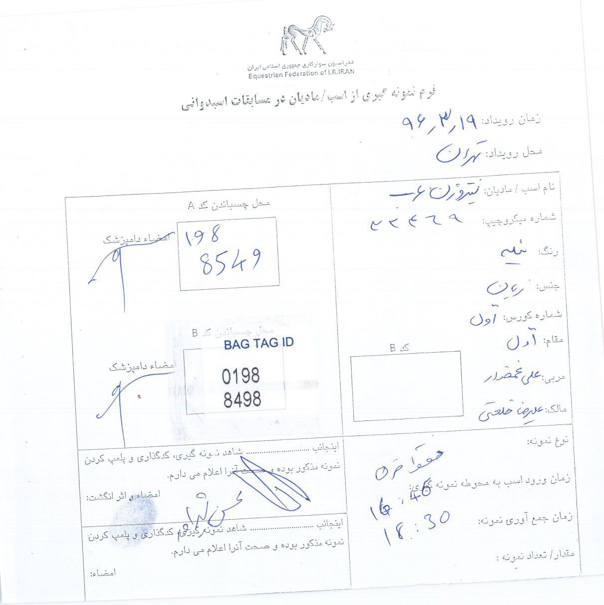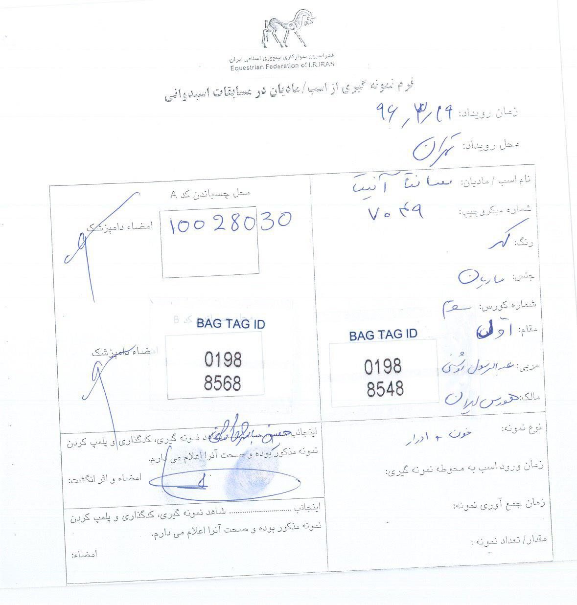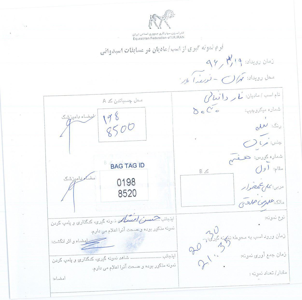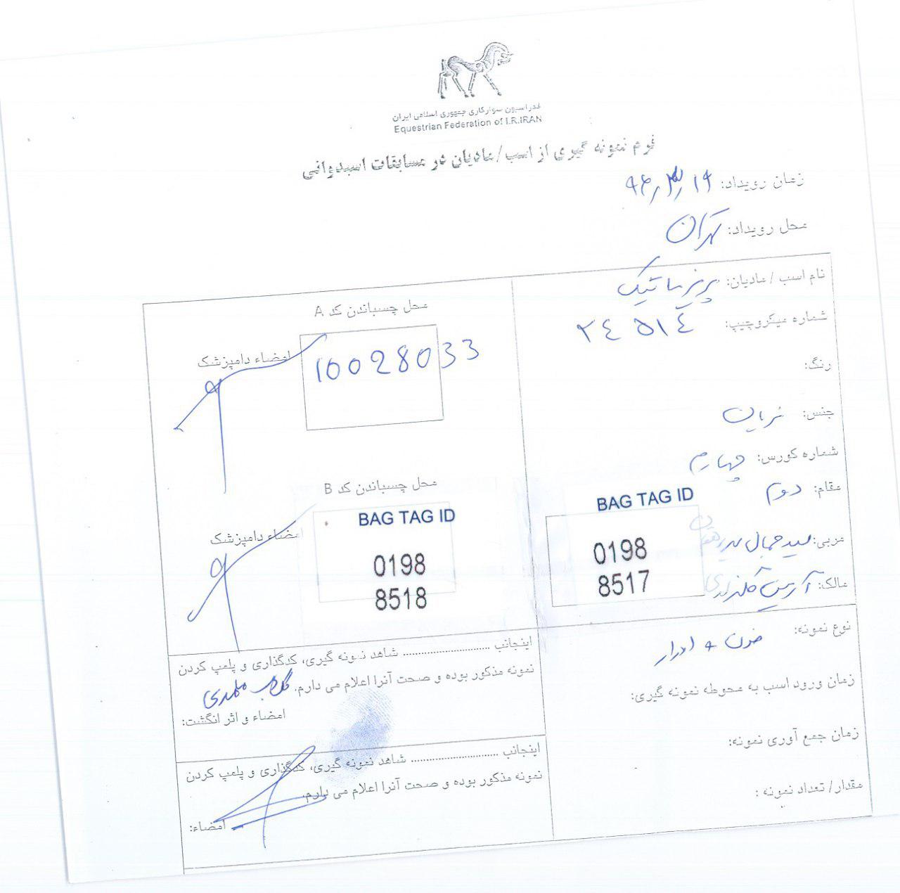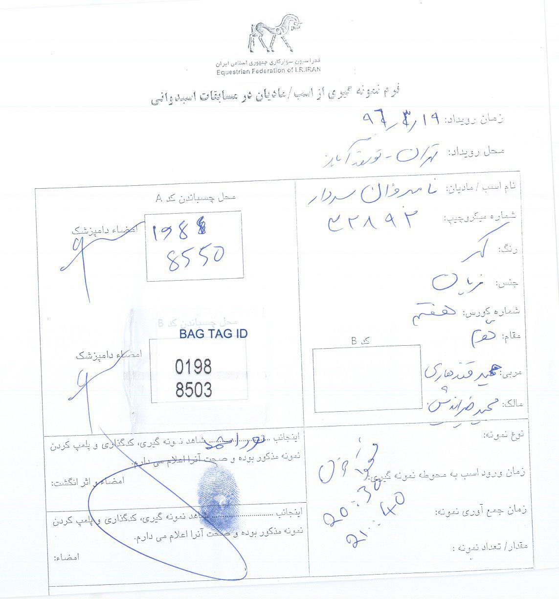نتایج آزمایشات دوپینگ هفته اول اسبدوانی تهران به شرح زیر است.