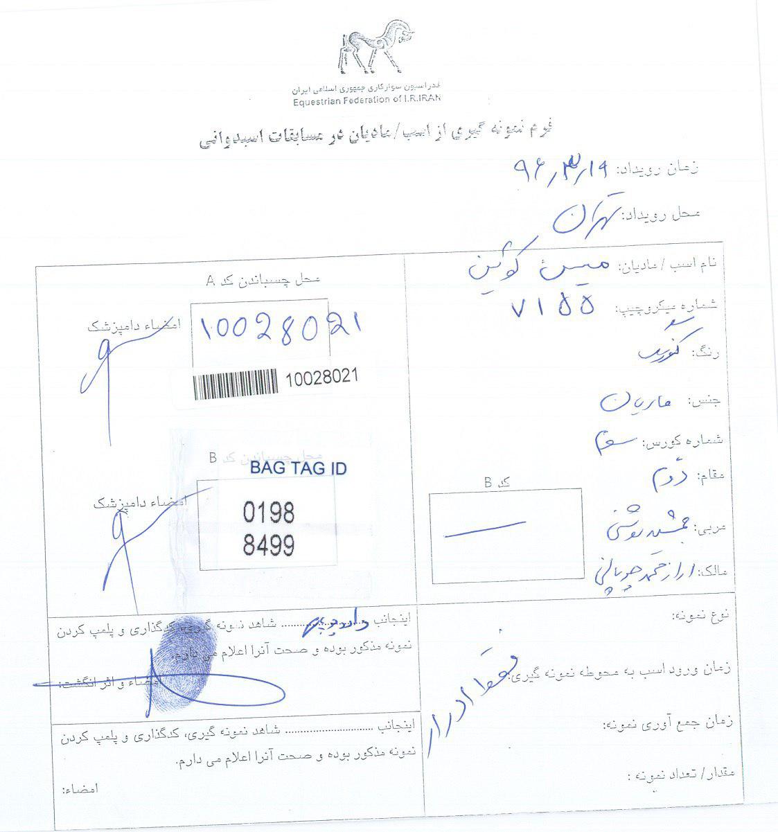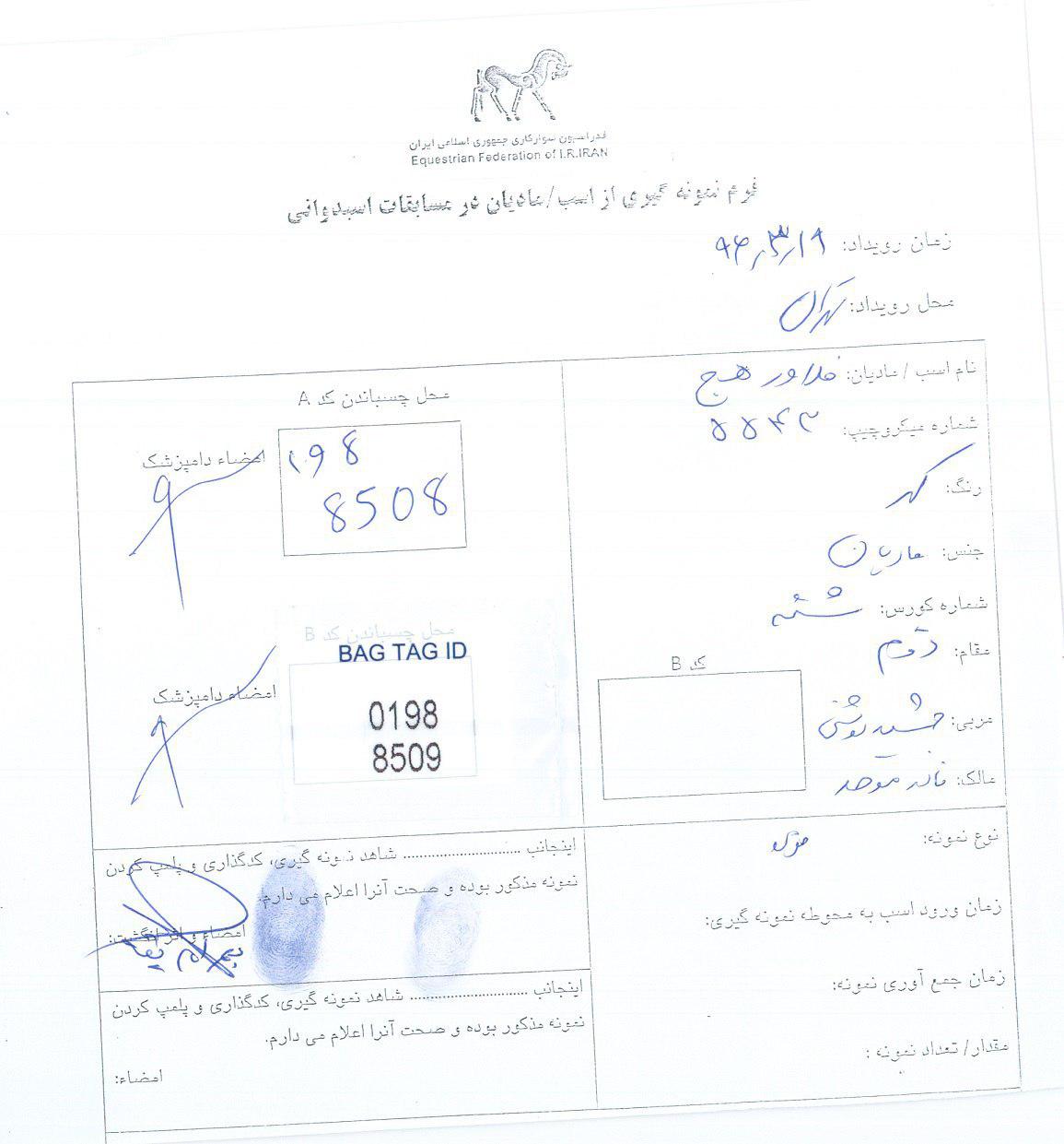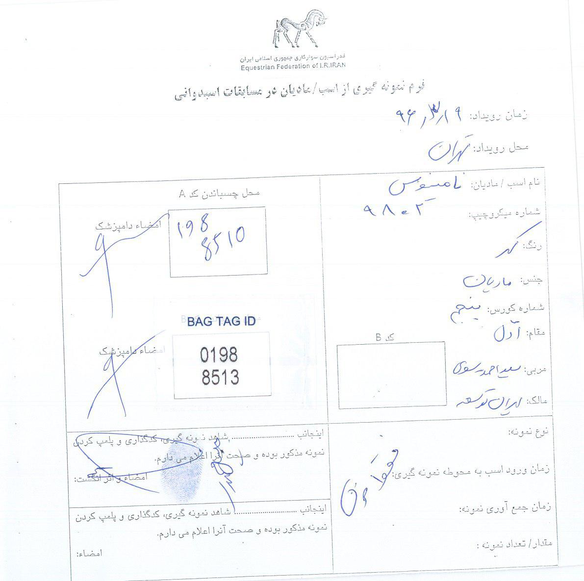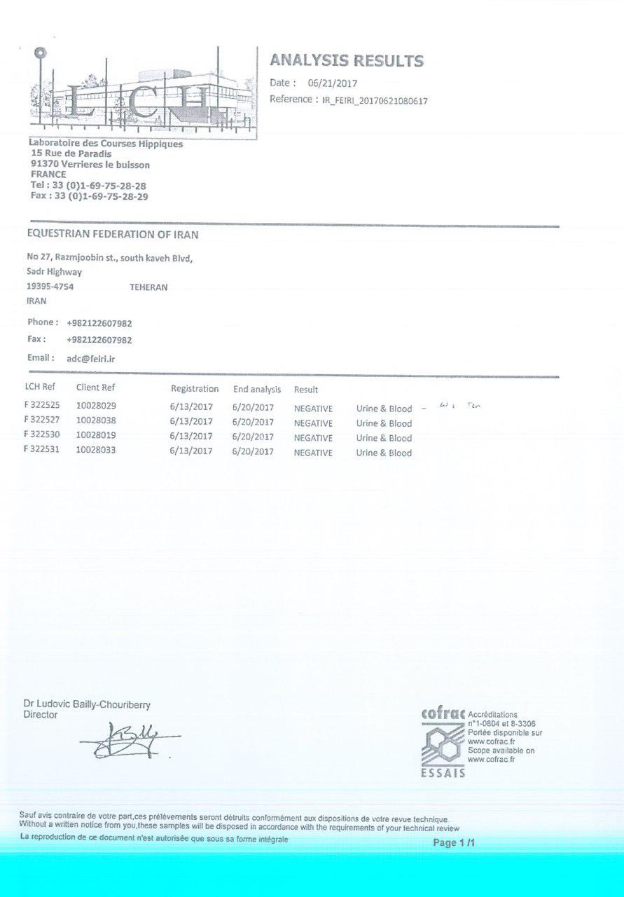 نتایج آزمایشات دوپینگ هفته اول اسبدوانی تهران به شرح زیر است.