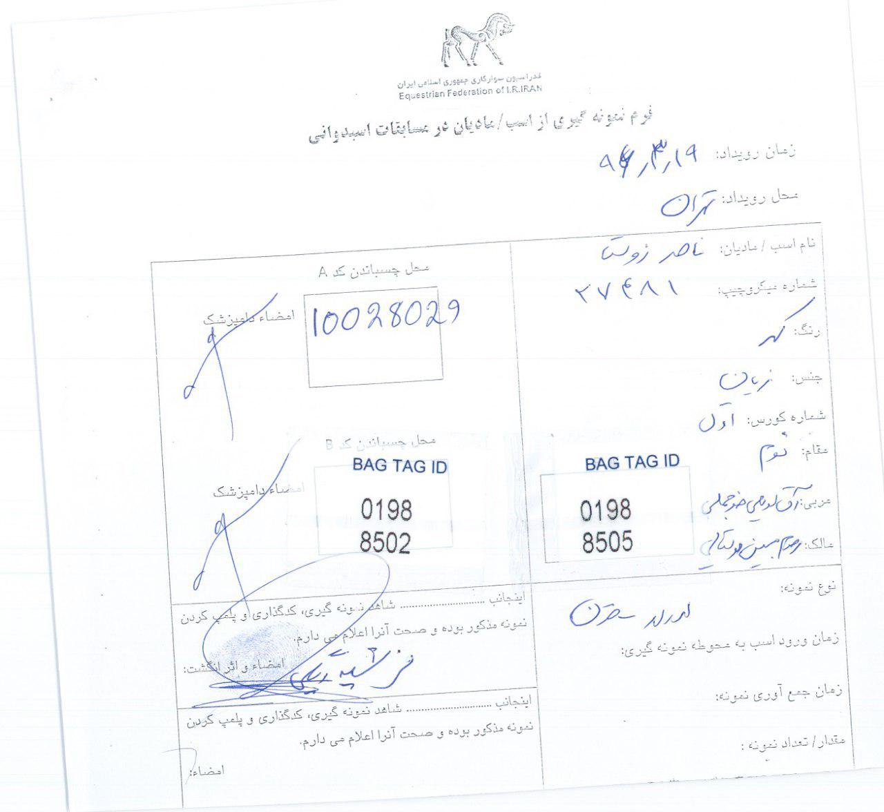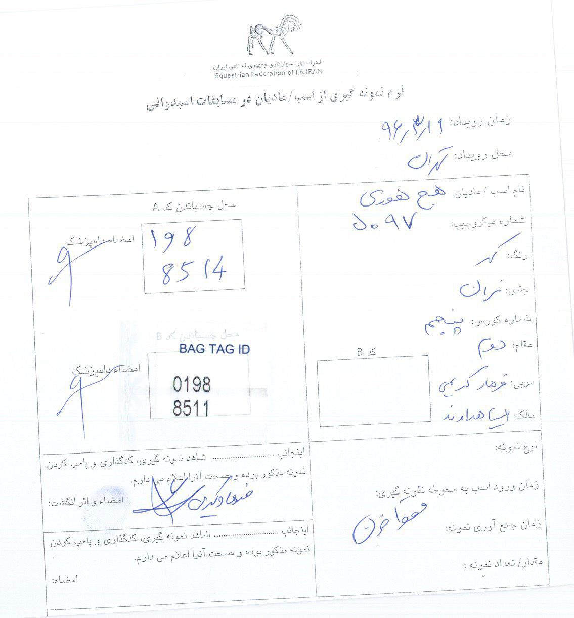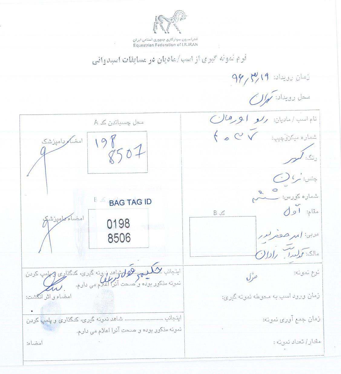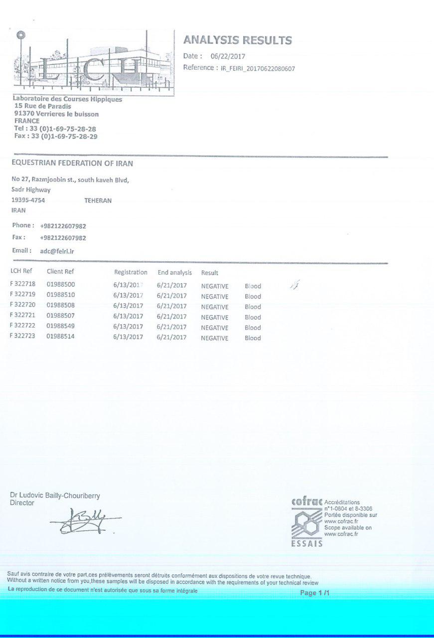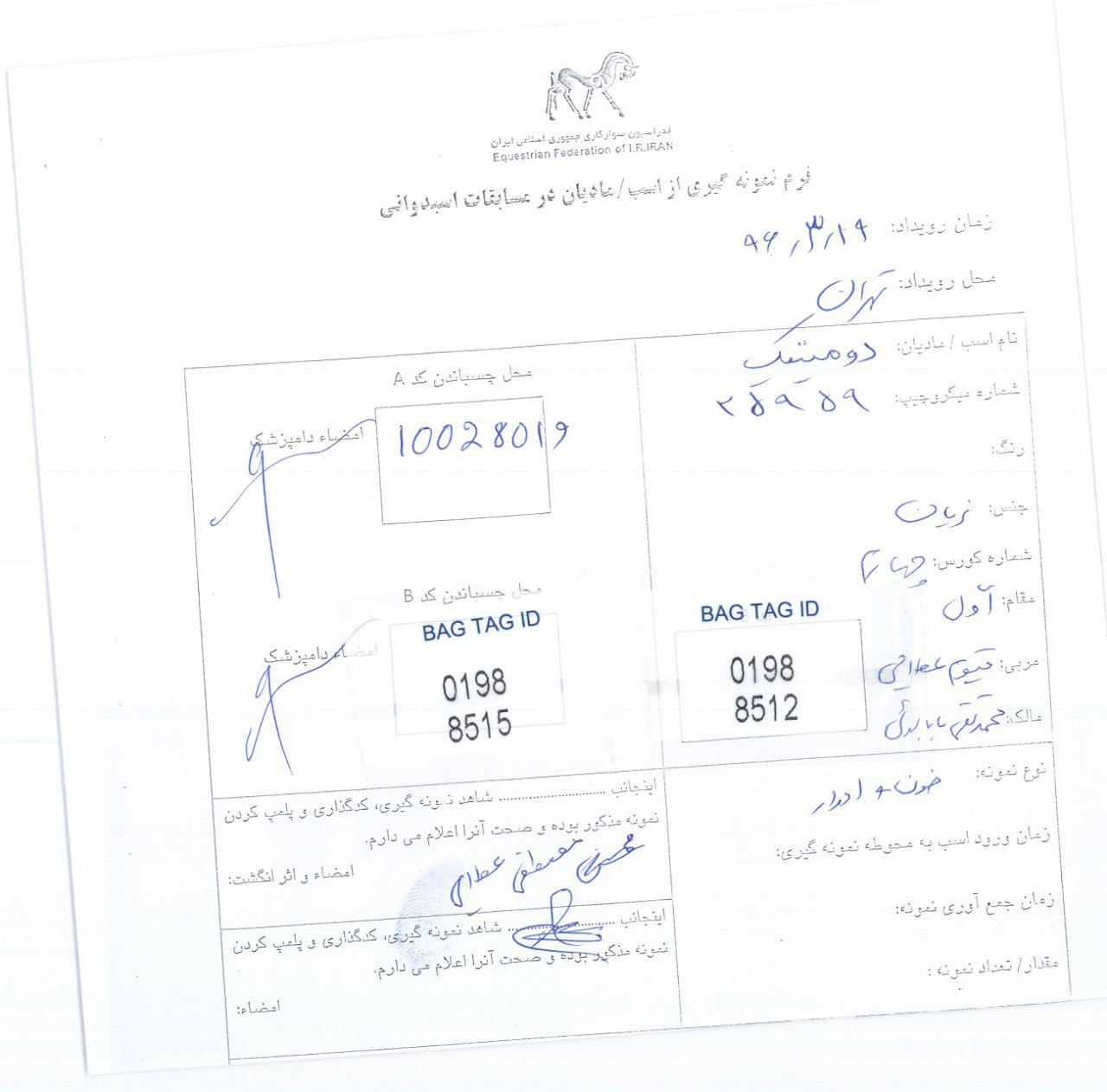 نتایج آزمایشات دوپینگ هفته اول اسبدوانی تهران به شرح زیر است.