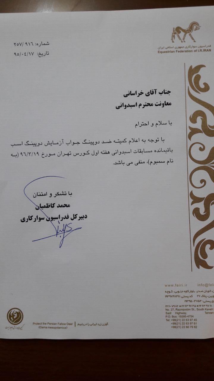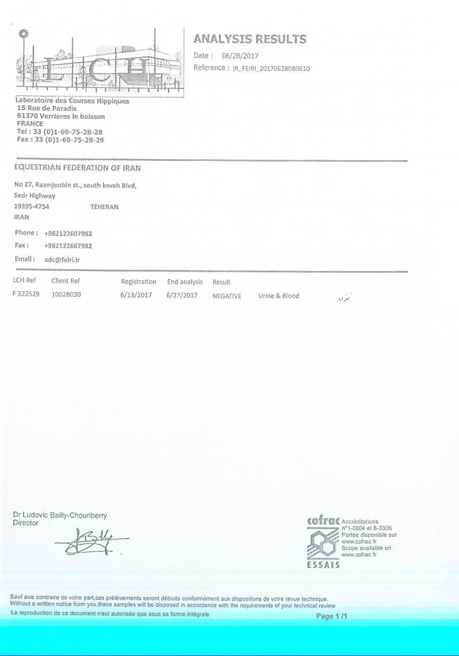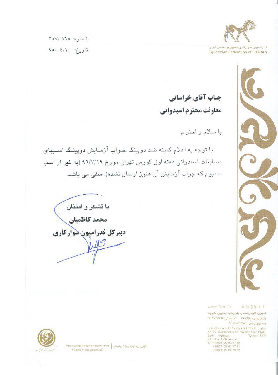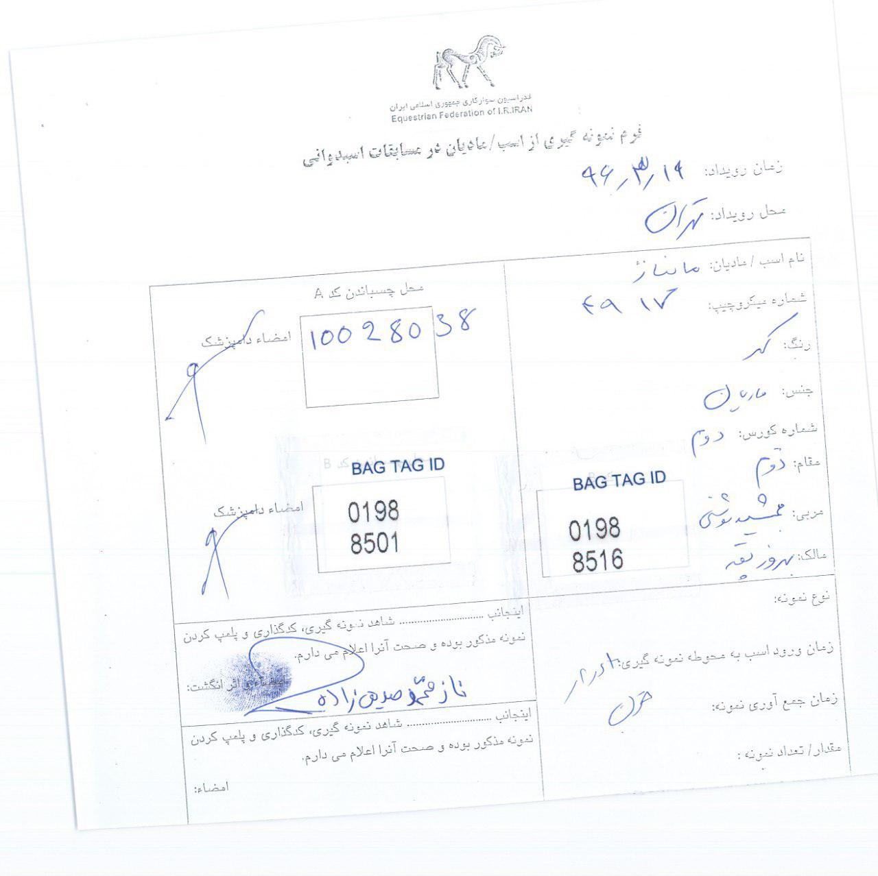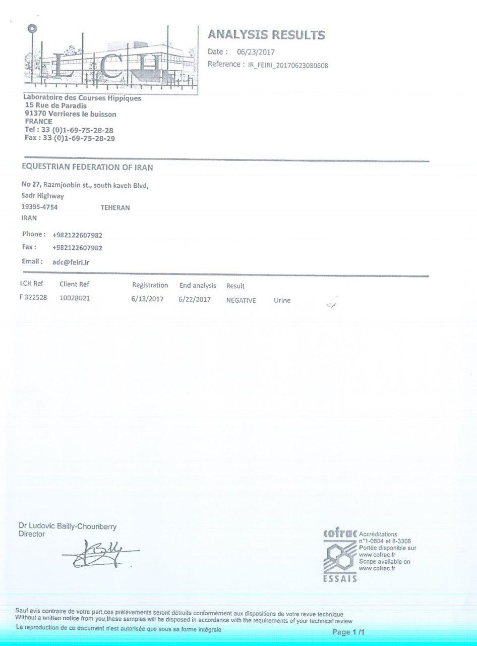 نتایج آزمایشات دوپینگ هفته اول اسبدوانی تهران به شرح زیر است.