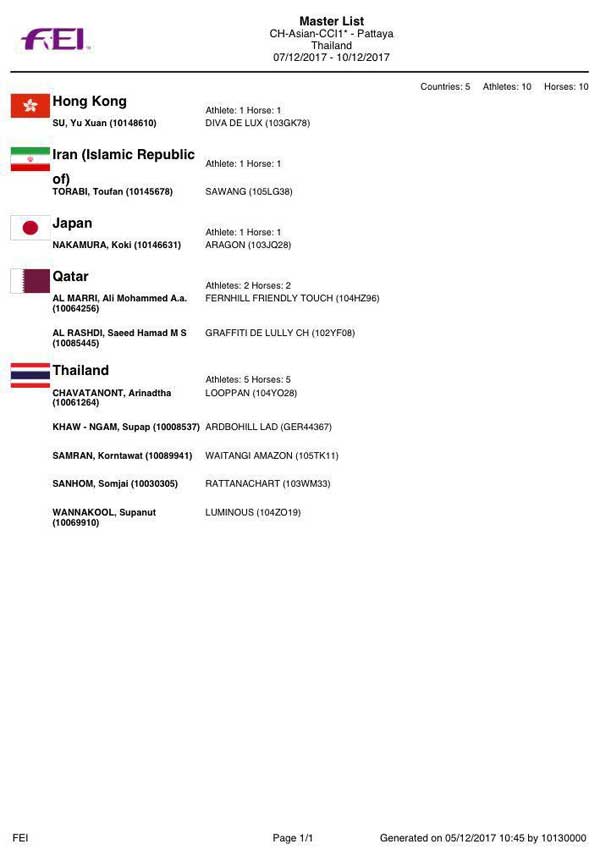 لیست ورود مسابقات سه روزه قهرمانی آسیا.