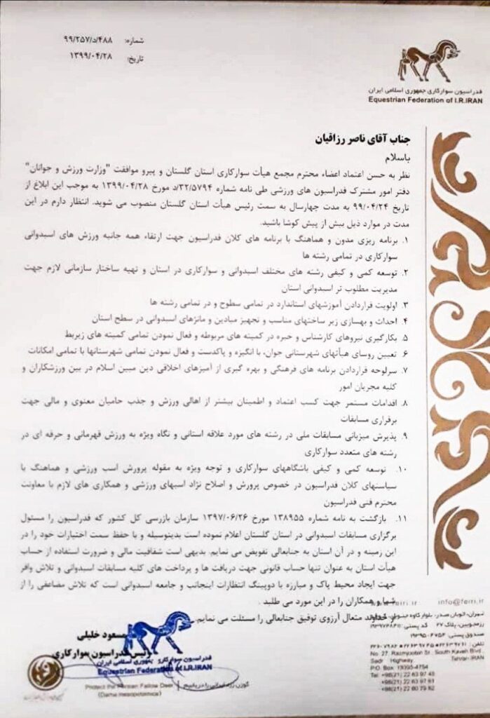 حكم رييس هيات سواركاري استان گلستان صادر شد