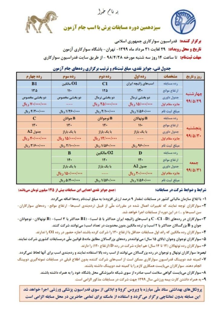 بخشنامه سیزدهمین دوره مسابقات پرش با اسب جام آزمون