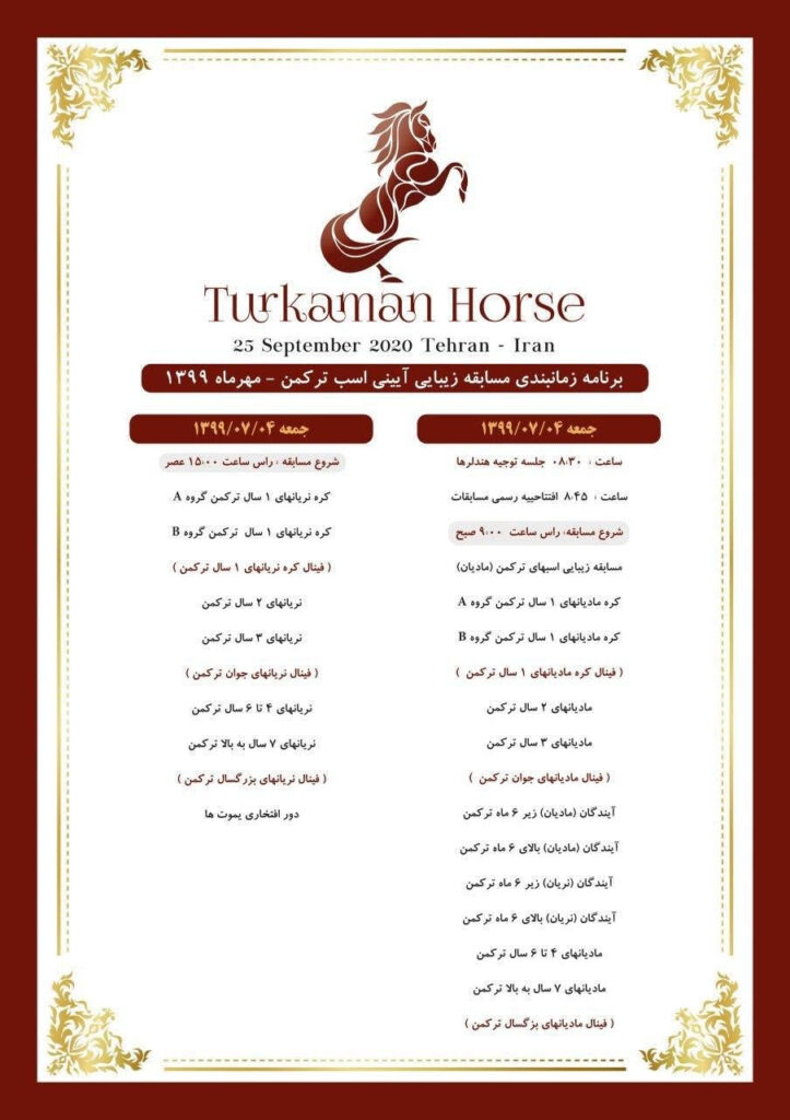 برنامه زمان بندی مسابقه زیبایی آیینی اسب ترکمن