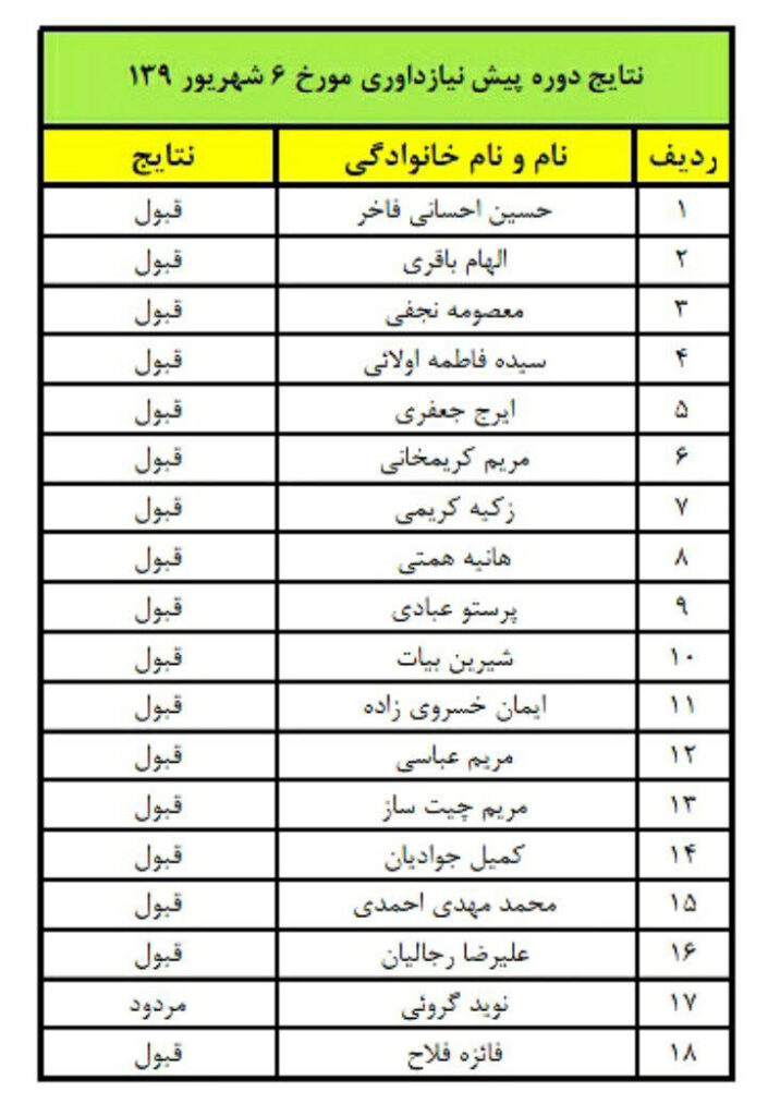 ️نتایج دوره آموزش پیش نیاز داوری درجه ۳ مورخ ۶ شهریور ۹۹ مدرس خانم مونا هداوند خانی