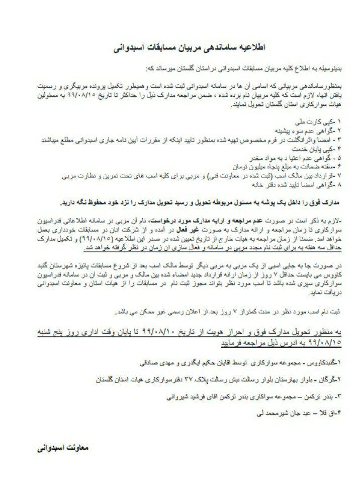️اطلاعیه دوره های آموزشی مسابقات سواره