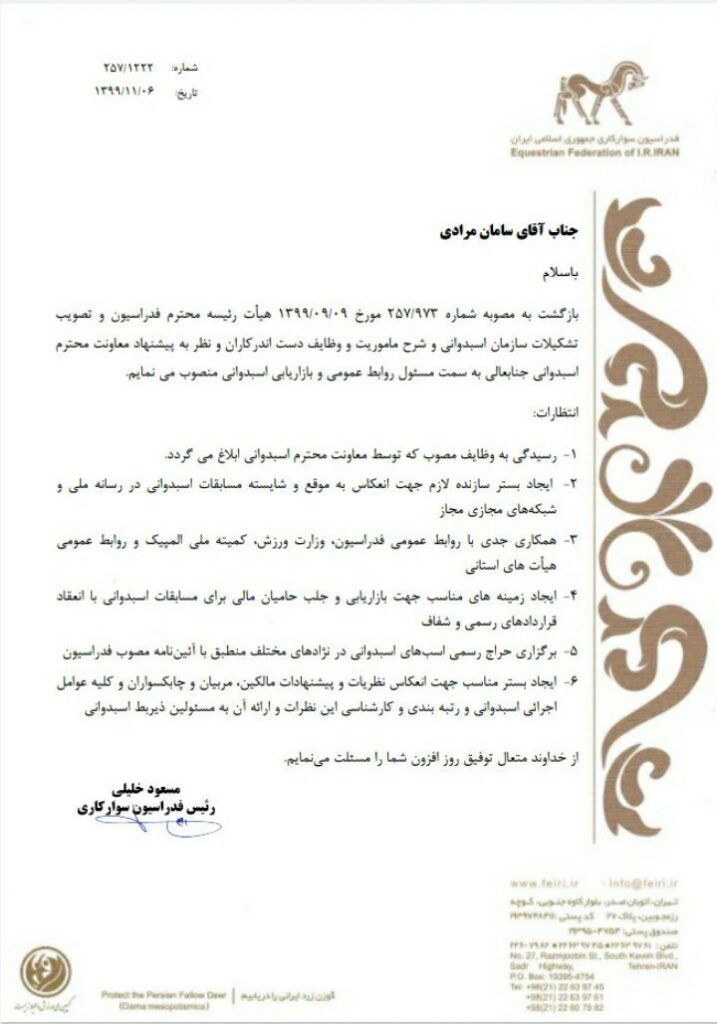 انتصاب سامان مرادی مسئول روابط عمومی و بازاریابی اسبدوانی