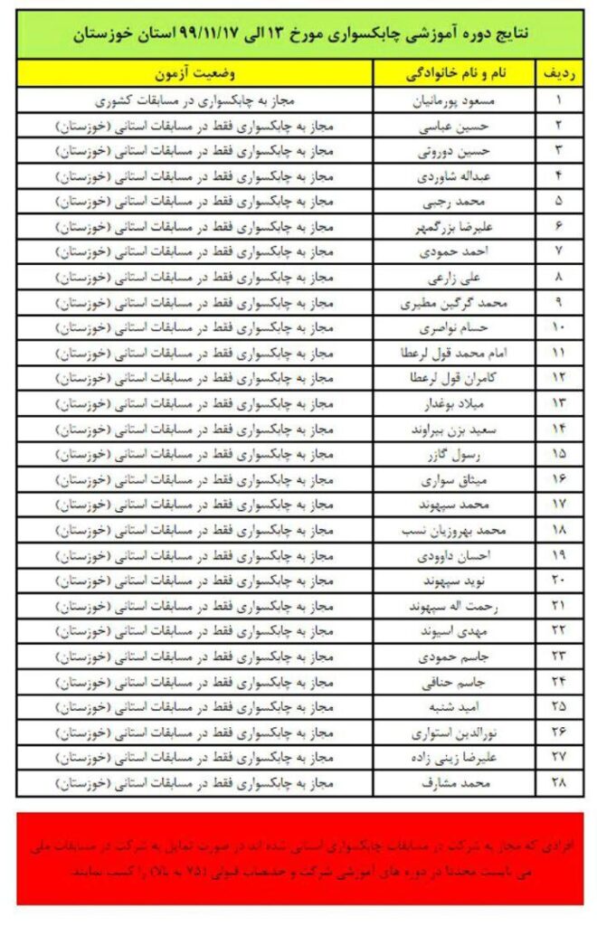 ️نتایج دوره آموزشی چابکسواری استان خوزستان ۱۳ الی ۱۷ بهمن ۹۹