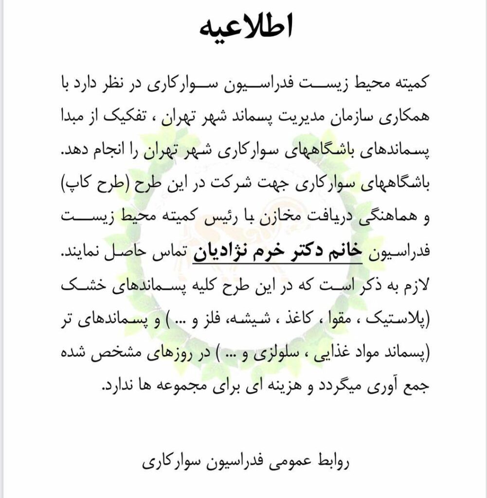 اطلاعیه طرح تفکیک پسماندهای باشگاه های سوارکاری
