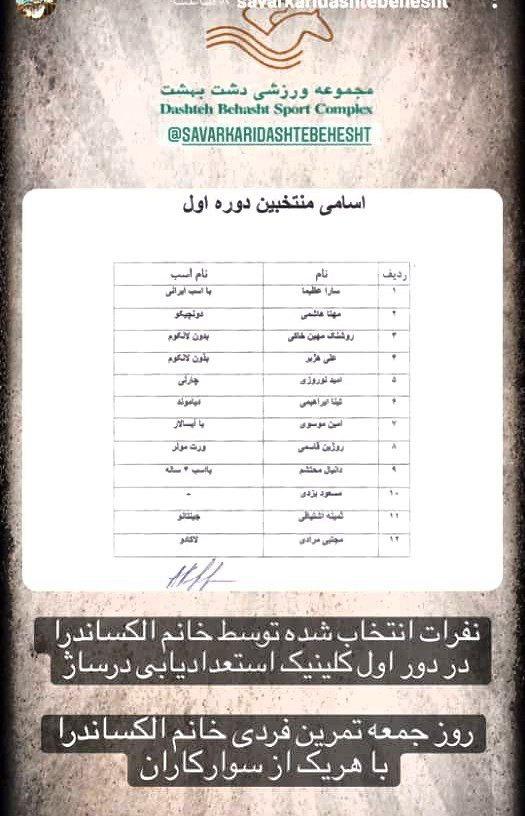 نفرات انتخاب شده توسط خانم الکساندرا در دور اول کلینیک استعدادیابی درساژ