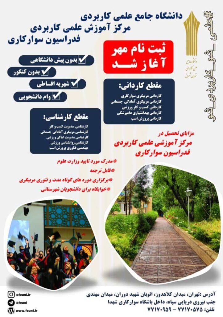 پیش ثبت نام ترم مهر ماه مرکز آموزش علمی کاربردی فدراسیون سوارکاری