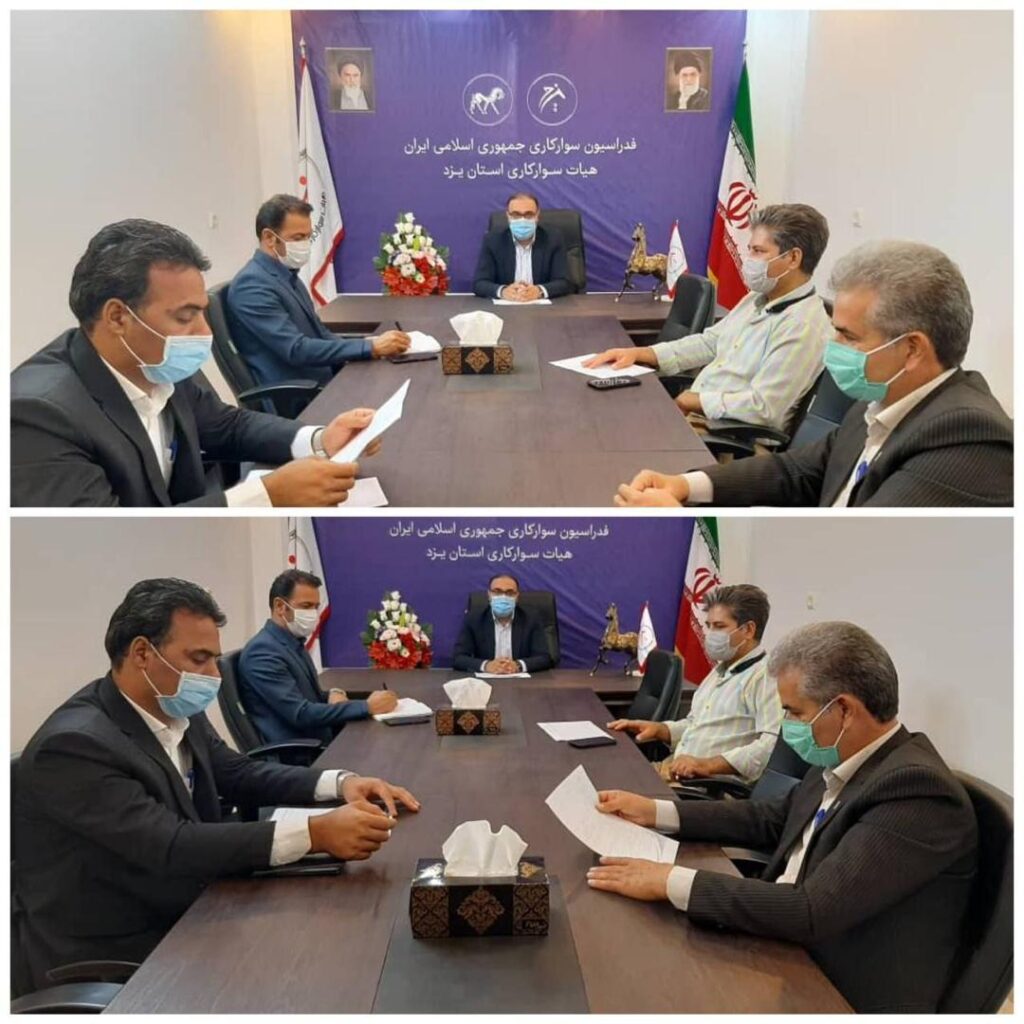 همگام با برنامه های راهبردی هیئت سوارکاری استان، جلسه ای با حضور رئیس هیئت سوارکاری استان و رؤسای هیئت های سوارکاری شهرستان های اشکذر، زارچ، مهریز و تفت پیرامون زیرساخت ها و نیازمندی های آموزشی با رعايت پروتكل هاي بهداشتي برگزار گردید . روابط عمومی هیات سوارکاری استان یزد