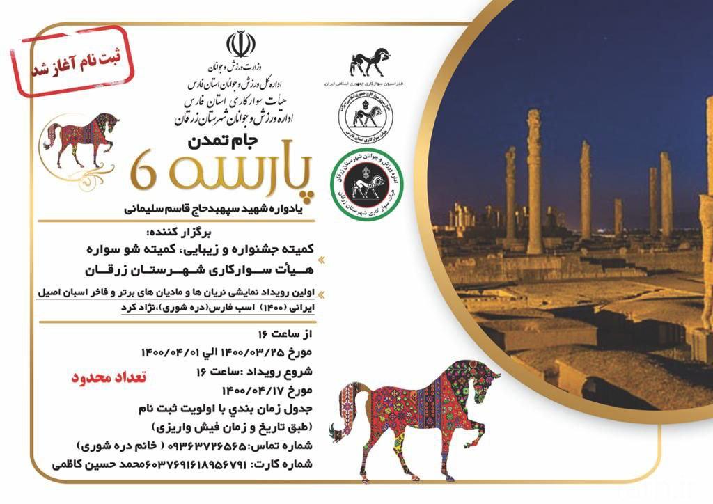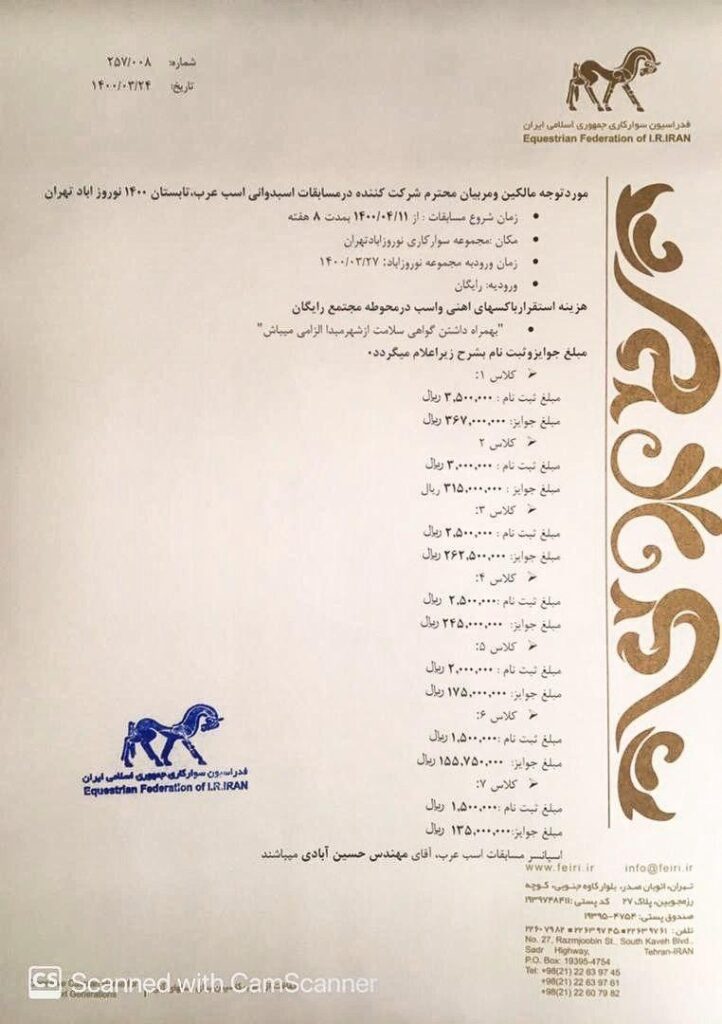 اطلاعیه شماره ۵ : قابل توجه کلیه هندلرها و مالکین شرکت کننده در دومین دوره مسابقات زیبایی اسب عرب – استان اردبیل ✅ محل برگزاری دومین دوره مسابقات زیبایی اسب عرب – استان اردبیل استادیوم تختی شهرستان اردبیل می باشد… ✳️ اميد است بتوانيم نقشي در تعالي این صنعت ایفا کنیم. دبیرخانه دومین دوره مسابقات […]
