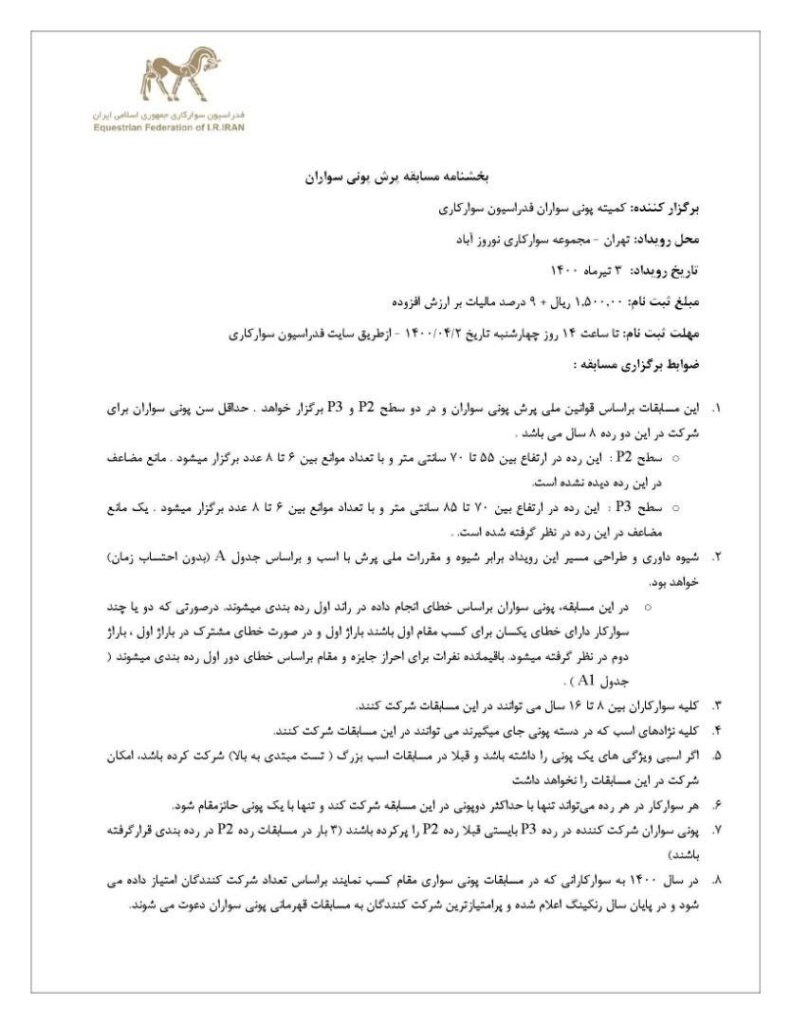 بخشنامه مسابقات پرش پونی