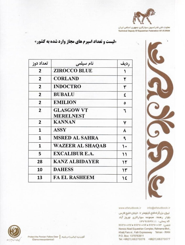 اطلاعیه معاونت فنی : اعلام مجدد لیست و تعداد اسپرم های مجاز وارد شده به کشور