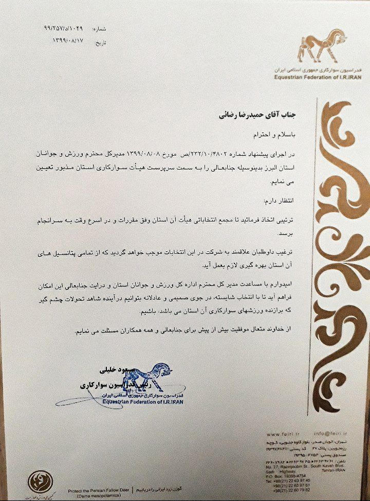 انتصاب سرپرست هیأت سوارکاری استان البرز
