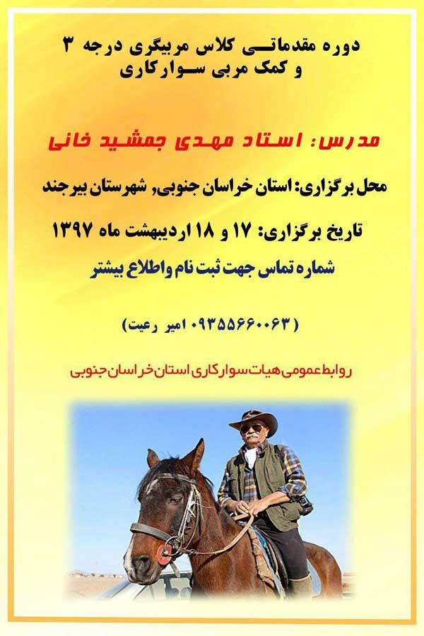 رده ها به ترتيب ، اسب وسوارمبتدي،رده E،رده اسب ايرانى 115cm(همراه با باراژ)،رده Cنونهالان(همراه با باراژ)،رده Cنوجوانان(همراه با باراژ)،Cجوانان ( همراه با باراژ) و رده Cبزرگسالان(همراه با باراژ) زمان برگزارى:جمعه ٩٧/٢/٢١ محل برگزارى : باشگاه سواركارى ملل بازديد از مسير ؛ساعت10:00 روابط عمومى هيات سواركارى استان فارس @feiri_news