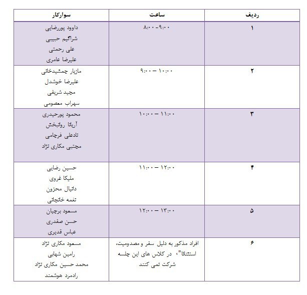 برنامه حضور ملی پوشان برای شرکت در کلاس های اردوی تیم ملی مشخص شد. ملی پوشان روز های سه شنبه و چهارشنبه 24 و 25 مرداد ماه در باشگاه ابرش تمرینات خود را از سر می گیرند.