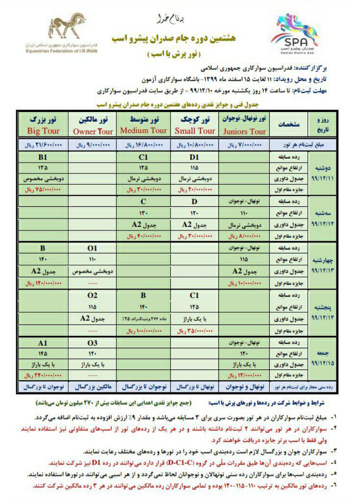️بخشنامه هشتمین دوره مسابقه پرش با اسب جام صدران پیشرو ۱۱ الی ۱۵ اسفند۹۹