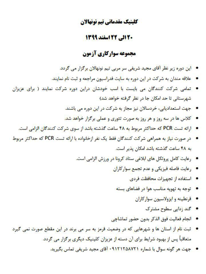 اطلاعیه کلینیک مقدماتی تیم نونهالان