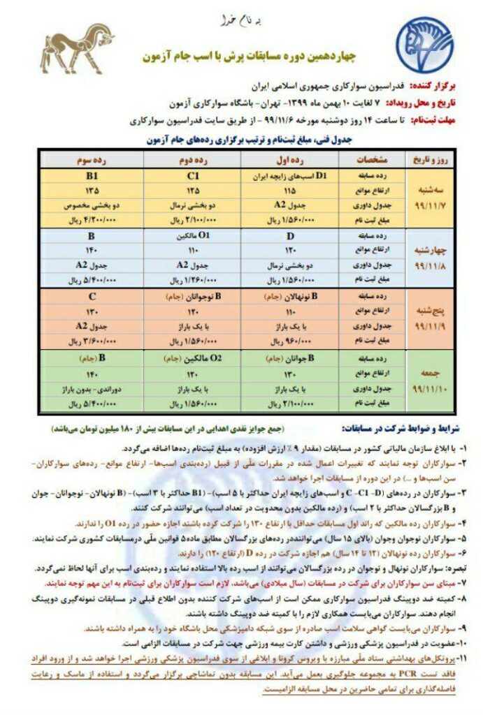بخشنامه چهاردهمین دوره مسابقات پرش با اسب جام آزمون
