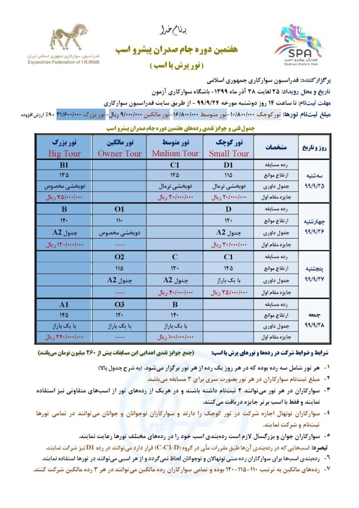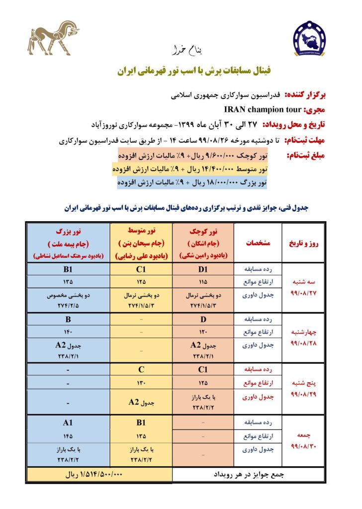 بخشنامه فینال مسابقات پرش با اسب تور قهرمانی ایران