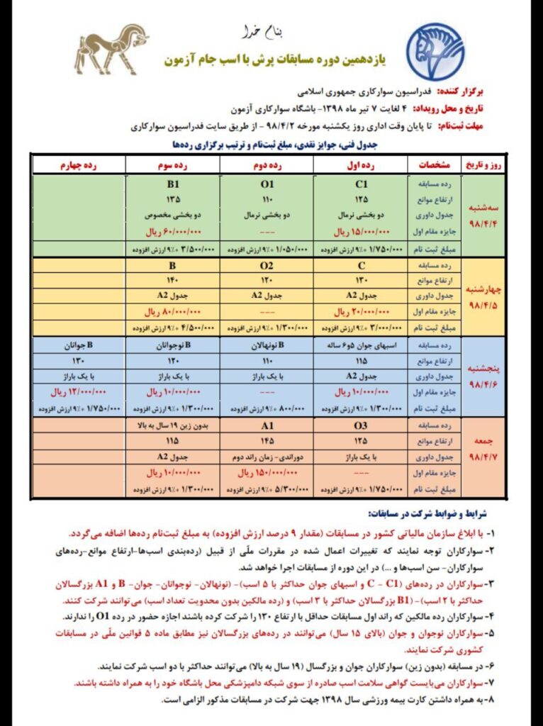 اطلاعیه دوازدهمين رویداد پرش با اسب هیأت باشگاه سواركاري آرياسب
