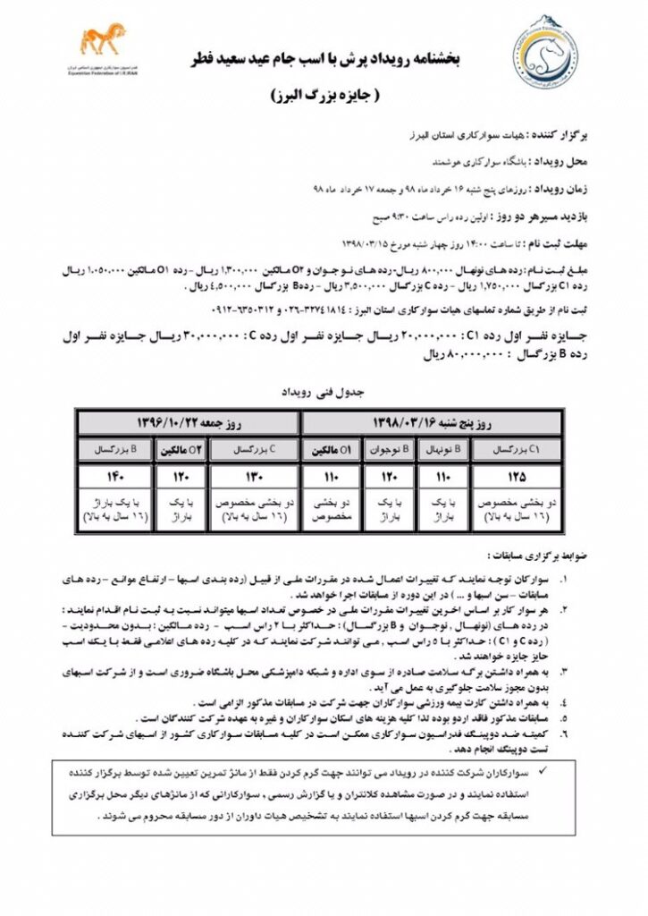 بخشنامه رویداد پرش با اسب جام عید فطر البرز