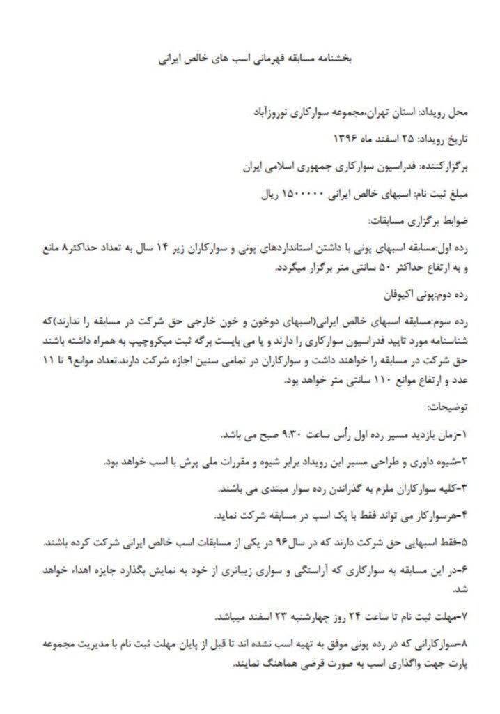 بخشنامه مسابقه قهرمانی اسب های خالص ایرانی