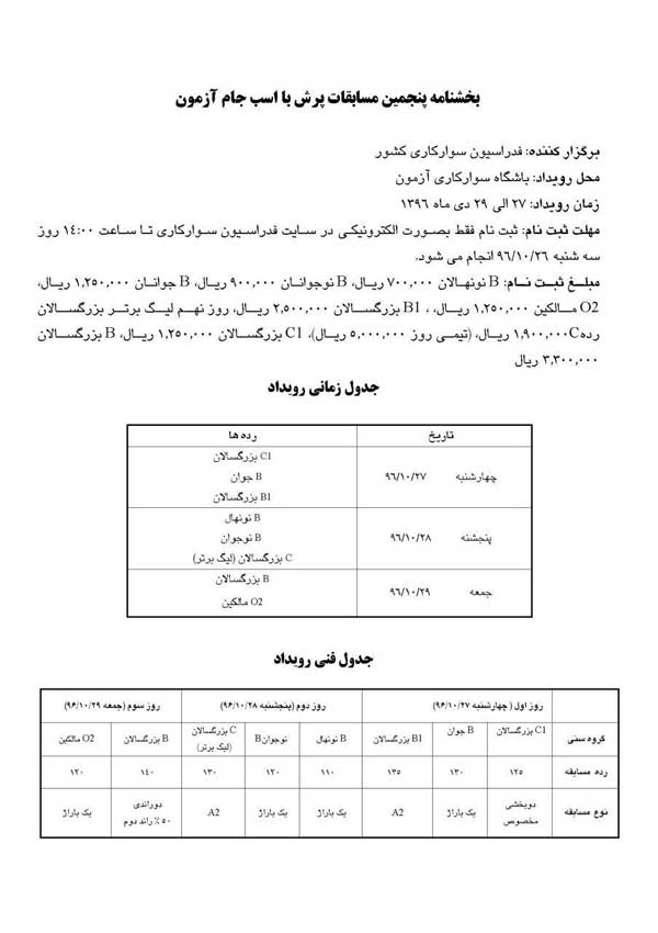 بخشنامه پنجمین مسابقه پرش با اسب جام آزمون